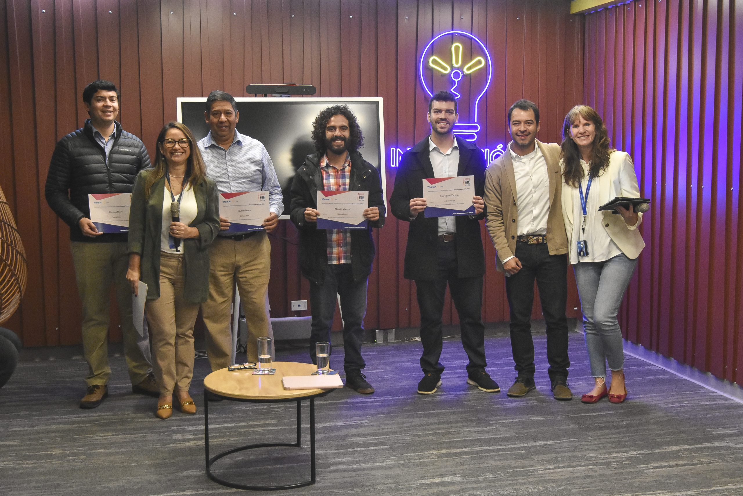 La actividad se realizó en las dependencias de Walmart Lab –ubicadas en el subsuelo del supermercado Lider Departamental–, hasta donde llegó el seremi de Economía, Cristián Rodríguez Binfa; el vicepresidente Comercial, Alejandro König y la Gerente de Asuntos Corporativos de Walmart Chile, Daniela Riutort, quienes coincidieron en destacar el aporte de una iniciativa que desde su creación ha permitido incluir más de mil nuevos productos en sus góndolas a nivel nacional.