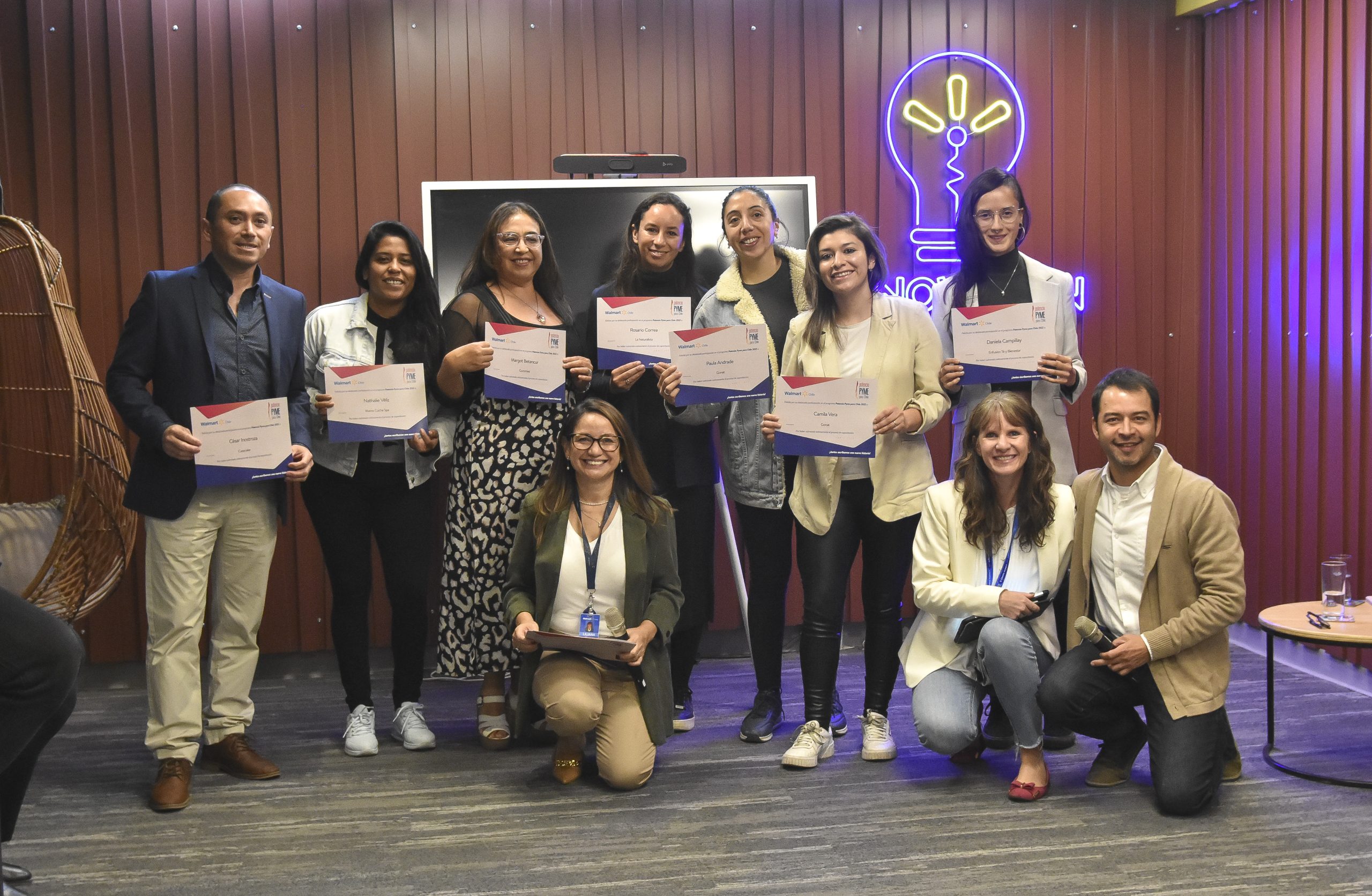 Pero esa no fue la única buena noticia de la jornada. Tras la certificación de los emprendimientos que cerraron con éxito el programa Potencia Pyme, desde Walmart Chile anunciaron la entrega de una nueva instancia de capacitación enfocada en las mujeres emprendedoras que recibieron el certificado por parte de la compañía.