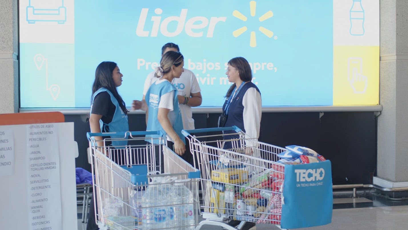 Adicionalmente, Walmart Chile buscó involucrar a sus clientes en la entrega de ayuda a familias damnificadas. Es así como, en alianza con TECHO, habilitó cinco locales del formato Lider -ubicados en las regiones afectadas- para el acopio de productos donados, los que estuvieron a cargo de voluntarios de la ONG. Junto con ello, implementó la opción de compra online y despacho directo a algunos de estos puntos de recolección -sin costo- para los clientes digitales.